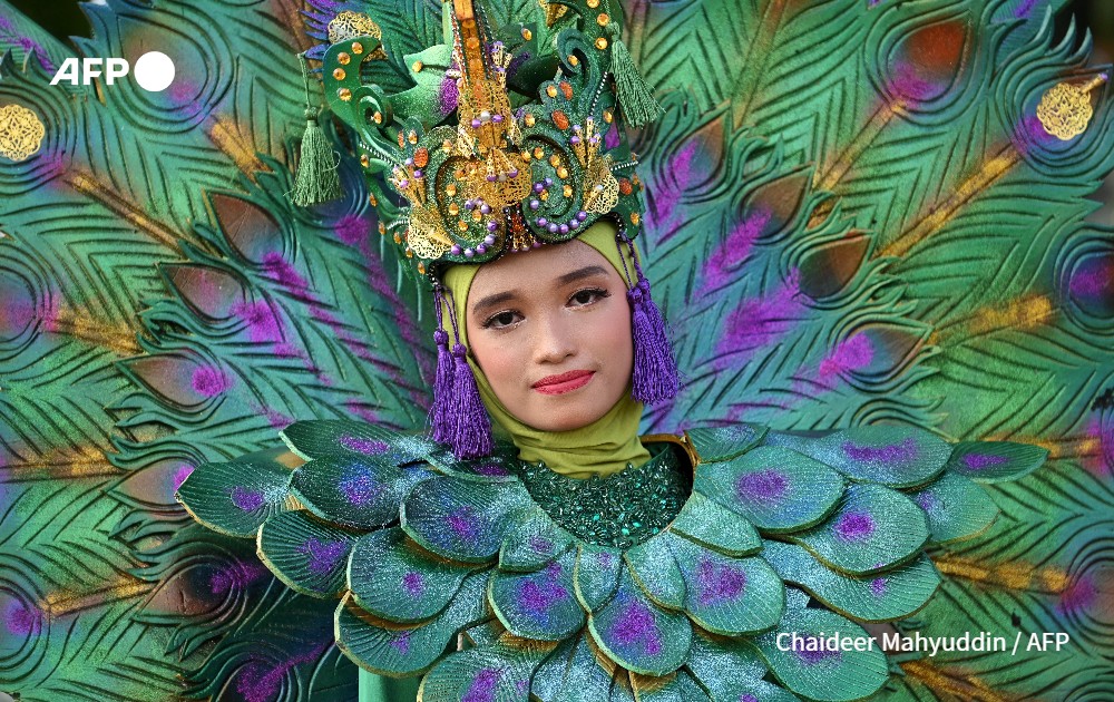 A youth participates in a cultural carnival street parade to celebrate the country's 77th Indonesia's Independence Day in Banda Aceh on August 18, 2022.