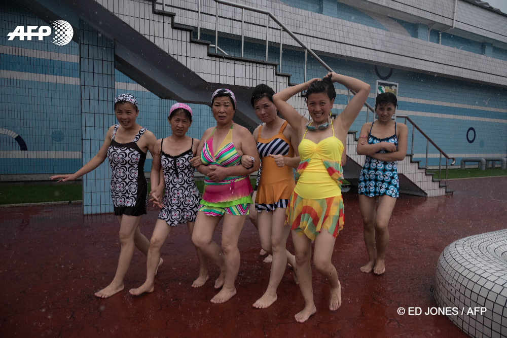 21/07/17 - Pyongyang, North Korea - Swimmers walk beside a pool at a water park in a leisure complex in Pyongyang on July 21, 2017. © ED JONES / AFP