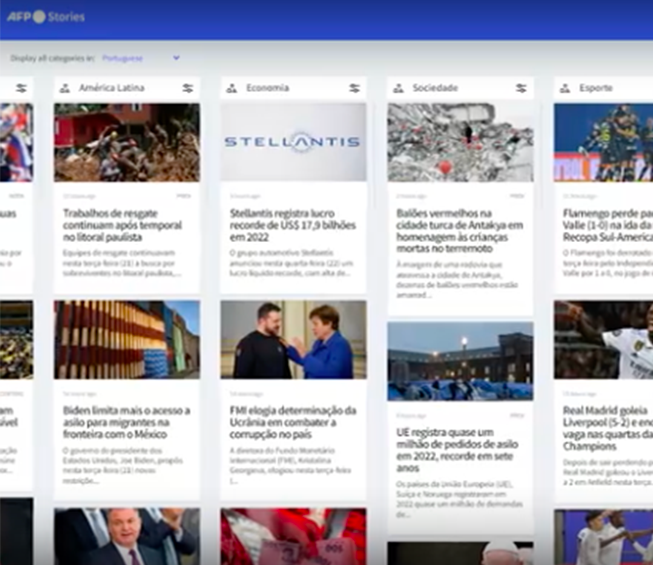 Antes de integrar los contenidos en su interfaz, explore gratuitamente los formatos, idiomas y temas disponibles en AFP Stories Deck.