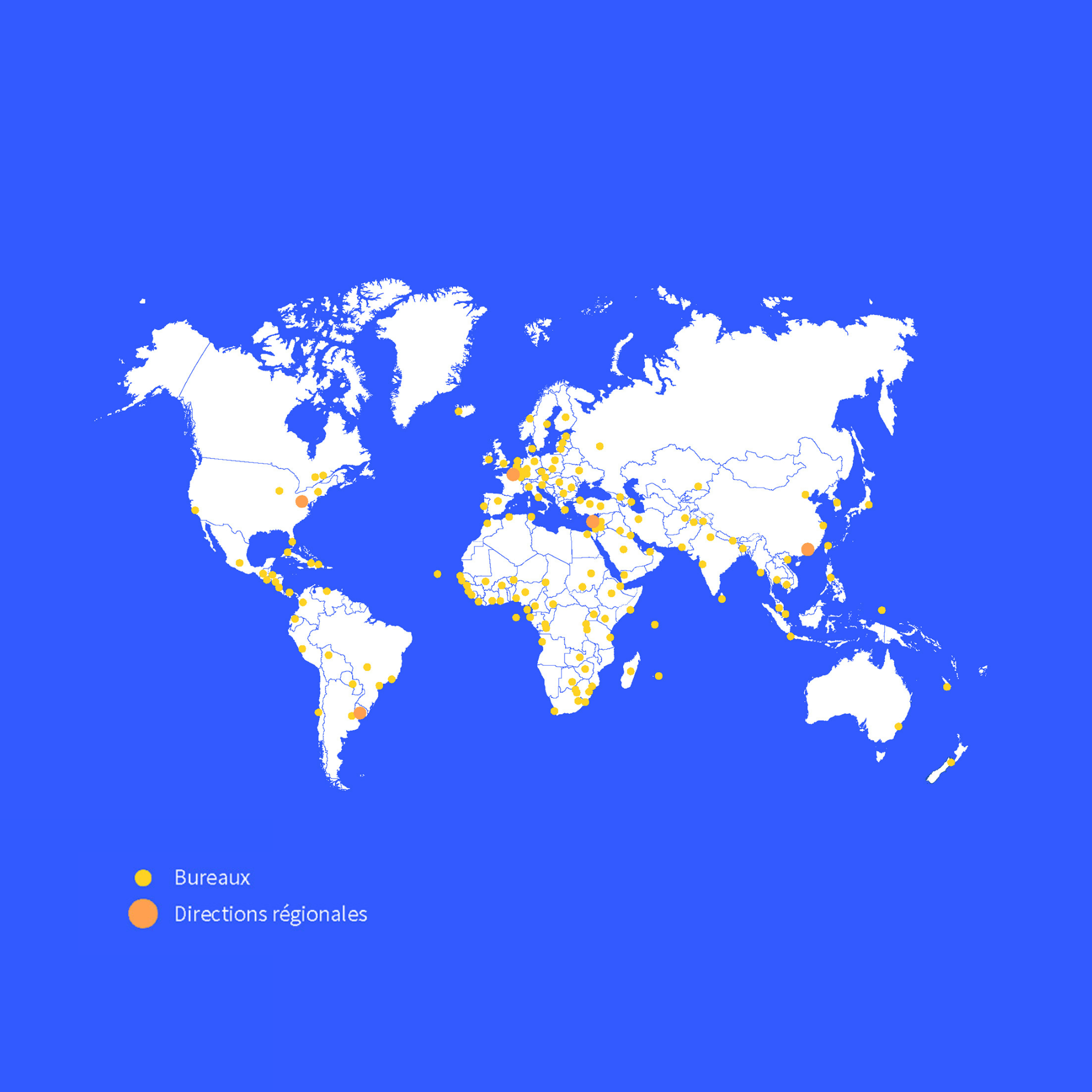 - États-Unis : Houston, Los Angeles, Miami, New York, San Francisco, Washington