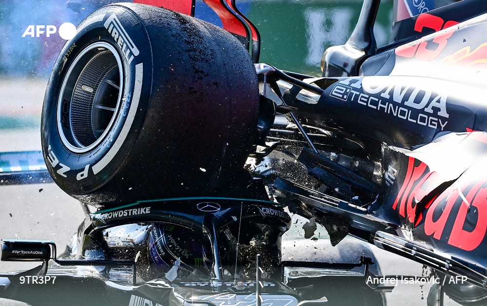 Ce cliché impressionnant de la collision entre la Mercedes du pilote britannique Lewis Hamilton et la Red Bull du néerlandais Max Verstappen fait aussi partie de la sélection des 120 photos de l’année de l’AFP.